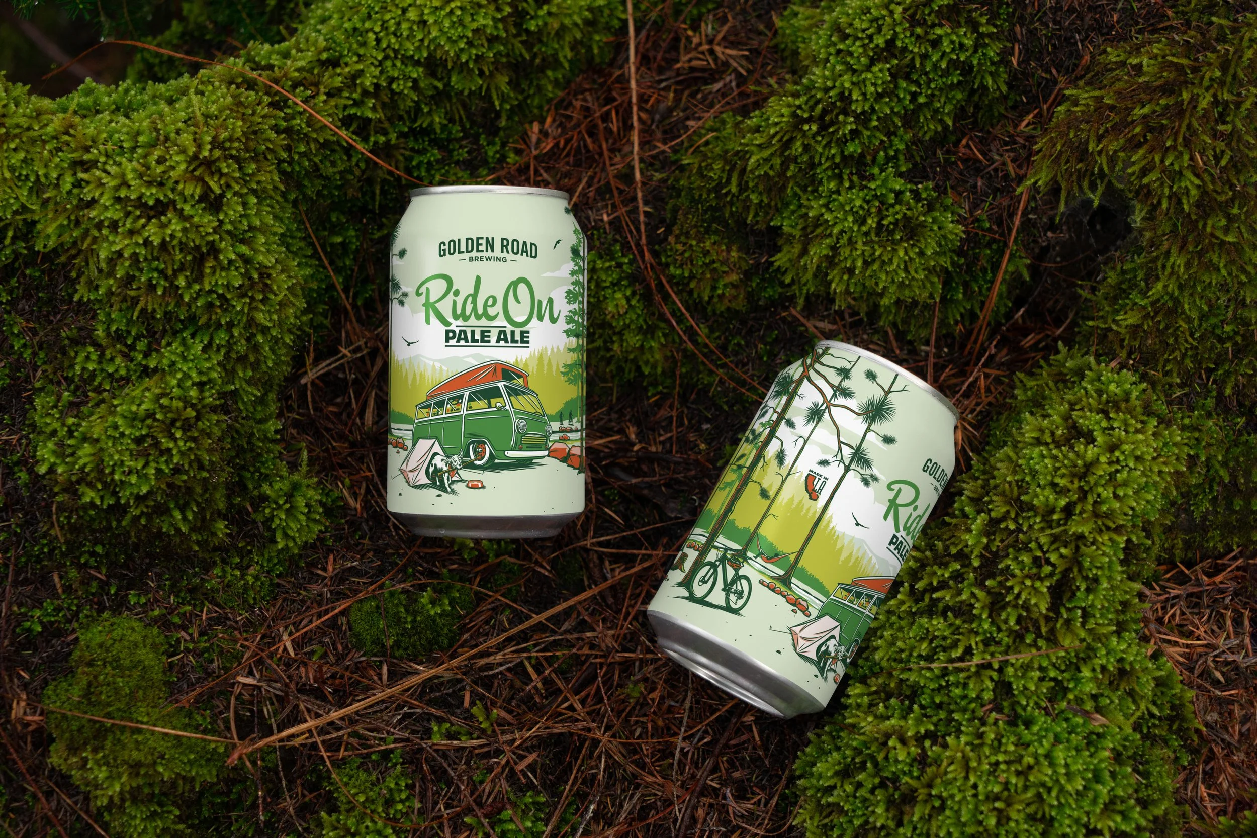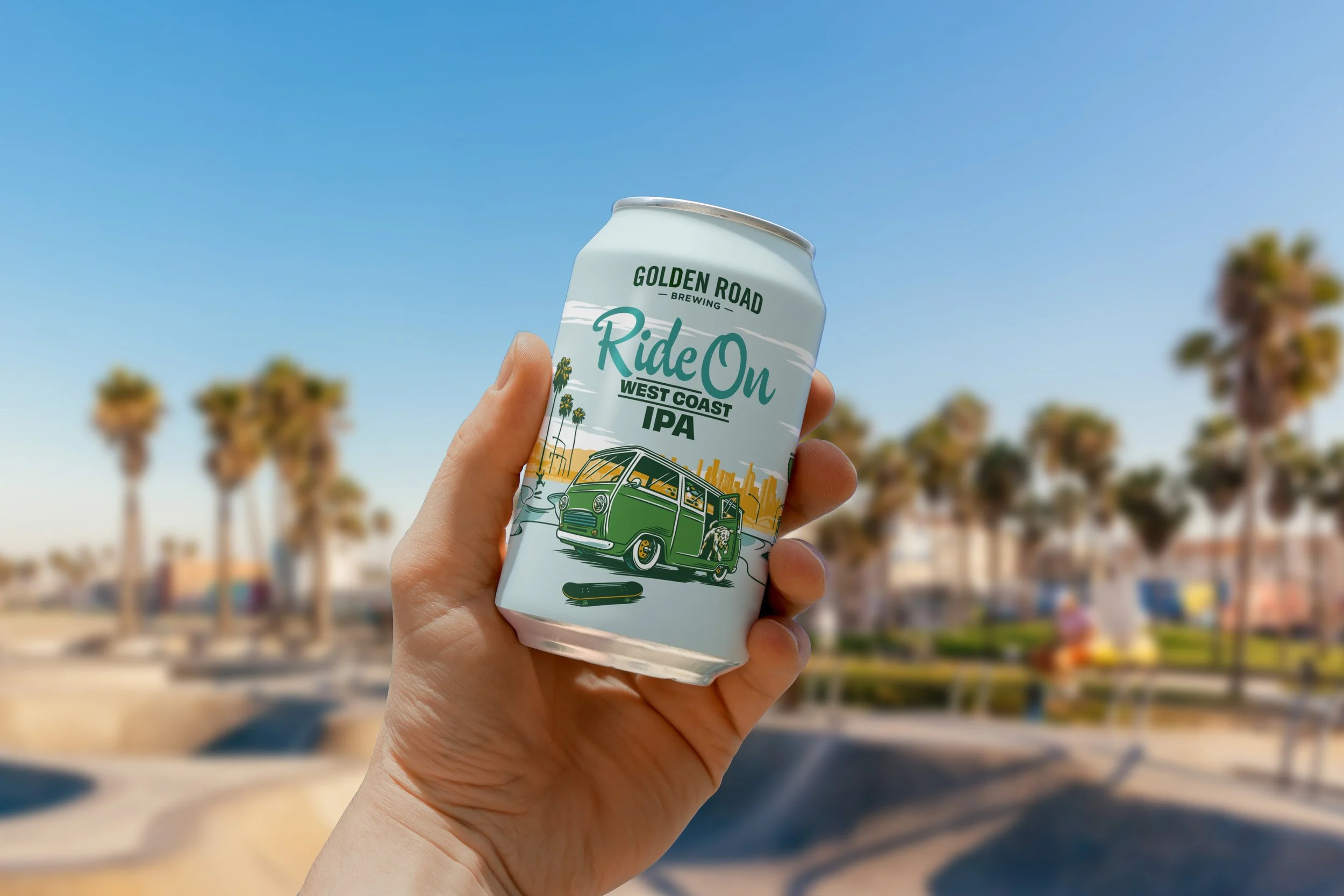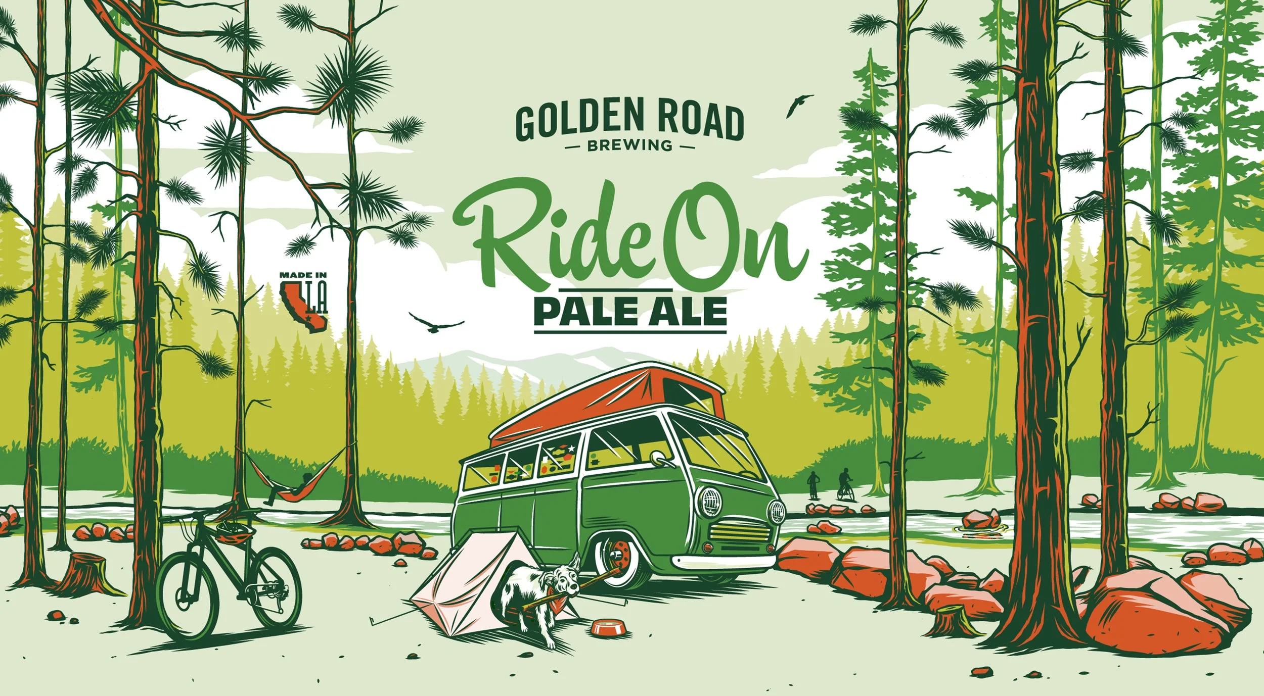 We were asked to help relaunch Golden Road Brewing’s “Ride On” line of beers, encompassing the Los Angeles spirit while highlighting the van mascot. We worked with illustrator KidMarkie to create four unique SoCal adventures featuring the van and sidekick dog.