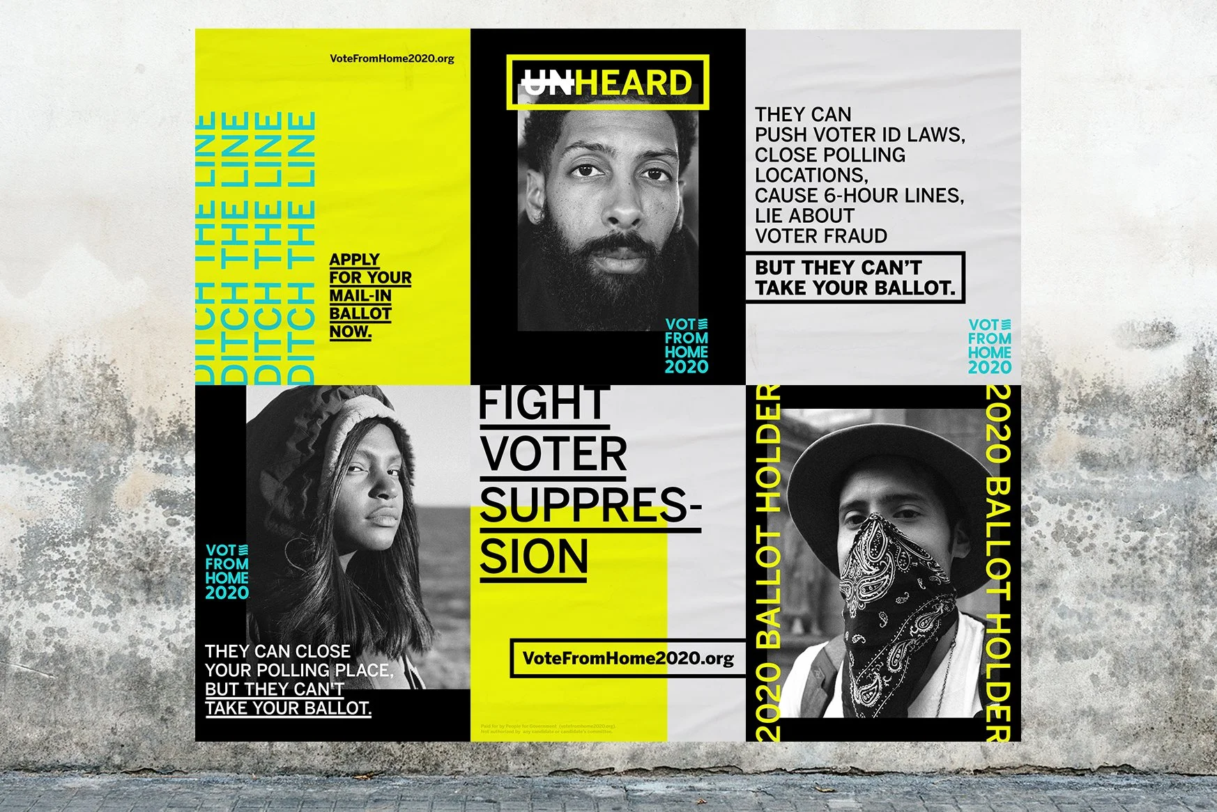 2020 was a time of unprecedented voter suppression for people of color, with polling places dropping in places like Milwaukee from 180 to just 5 — forcing those that voted to wait in lines that were often hours long, all during a pandemic. No one should have to risk their lives to cast their vote. In order to help get these swing state voters mail-in ballots, we teamed up with grassroots organization Vote From Home to create the campaign “Suppress This,” getting absentee ballots in the hands of voters of color located in swing states.
