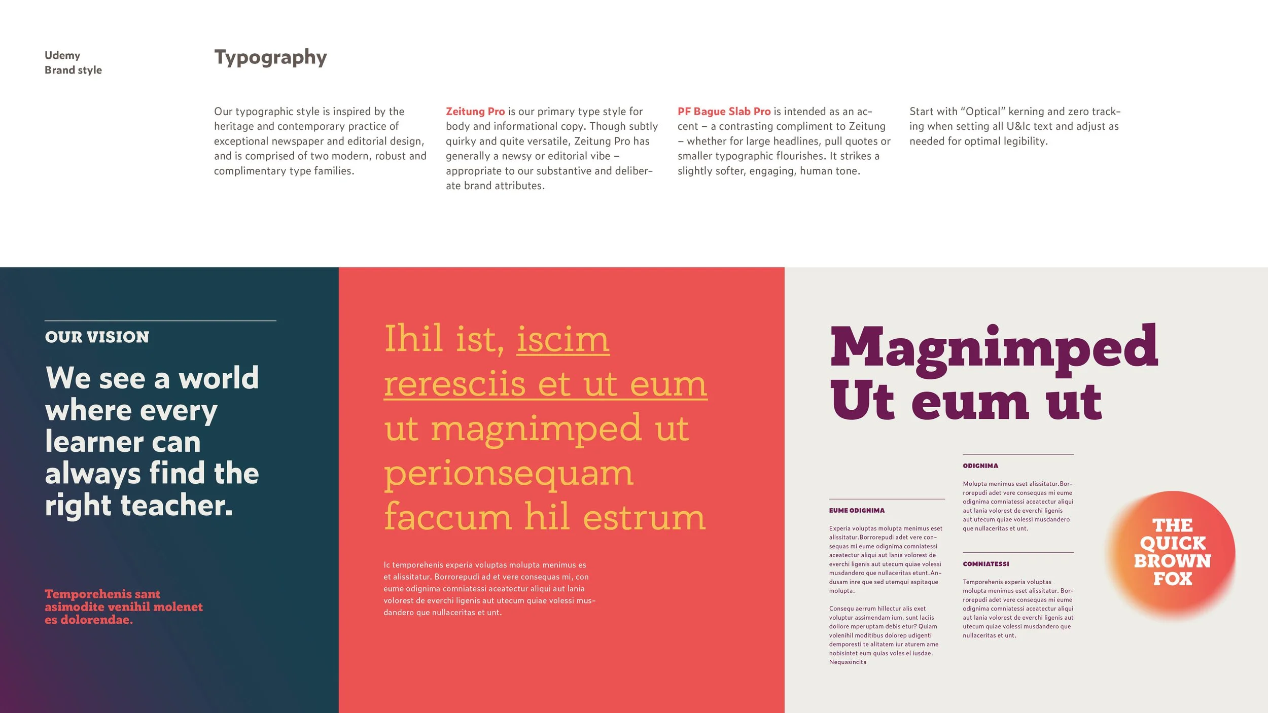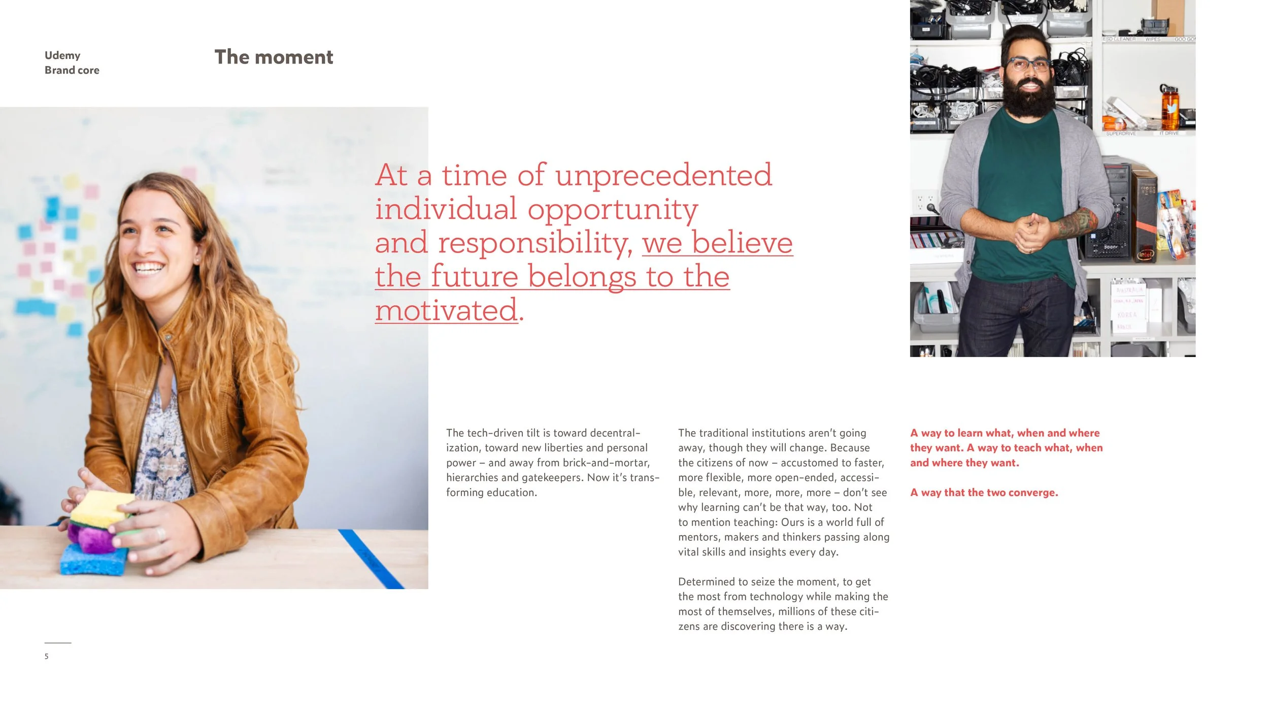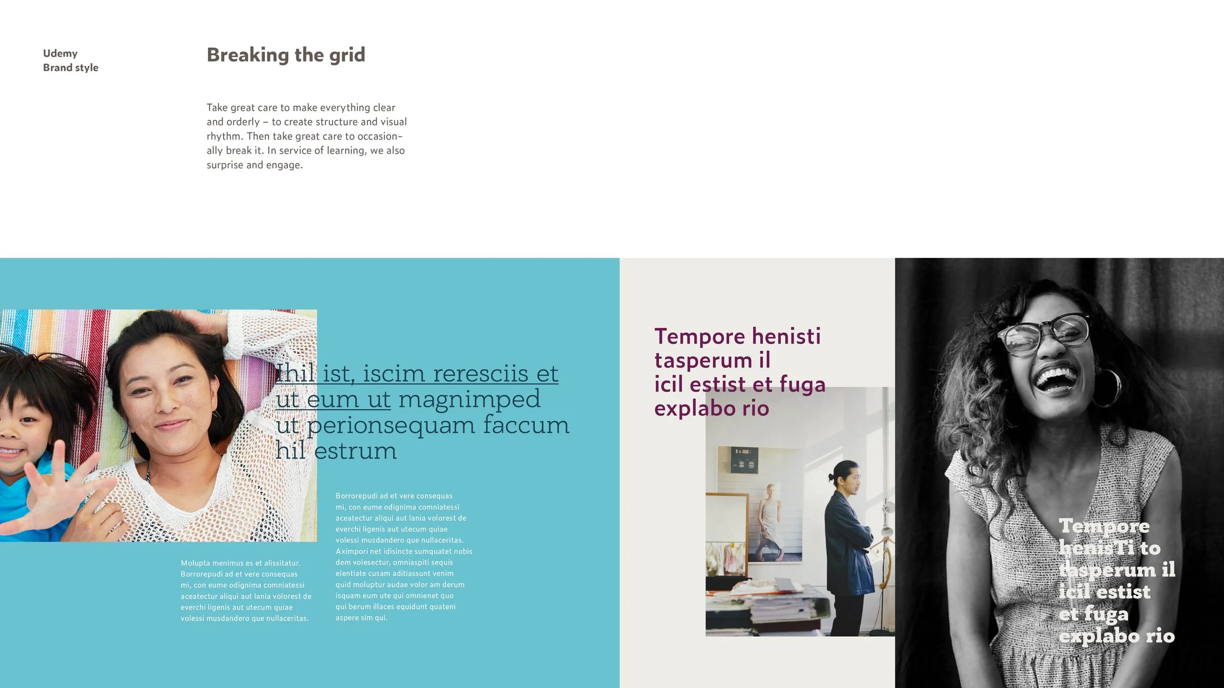 Udemy, a global community for learning and teaching online, came to Duncan Channon for comprehensive identity overhaul. After many days and nights dreaming of anything “U,” the final mark strikes a chord with the personal side of the brand. It mimics a signature, and also represents the motion and flow of a person’s life and learning — illustrated in the fluid, seamless connection of the “U” when repeated. The other components of the rebrand aim to integrate an overall feel of warmth and diversity.